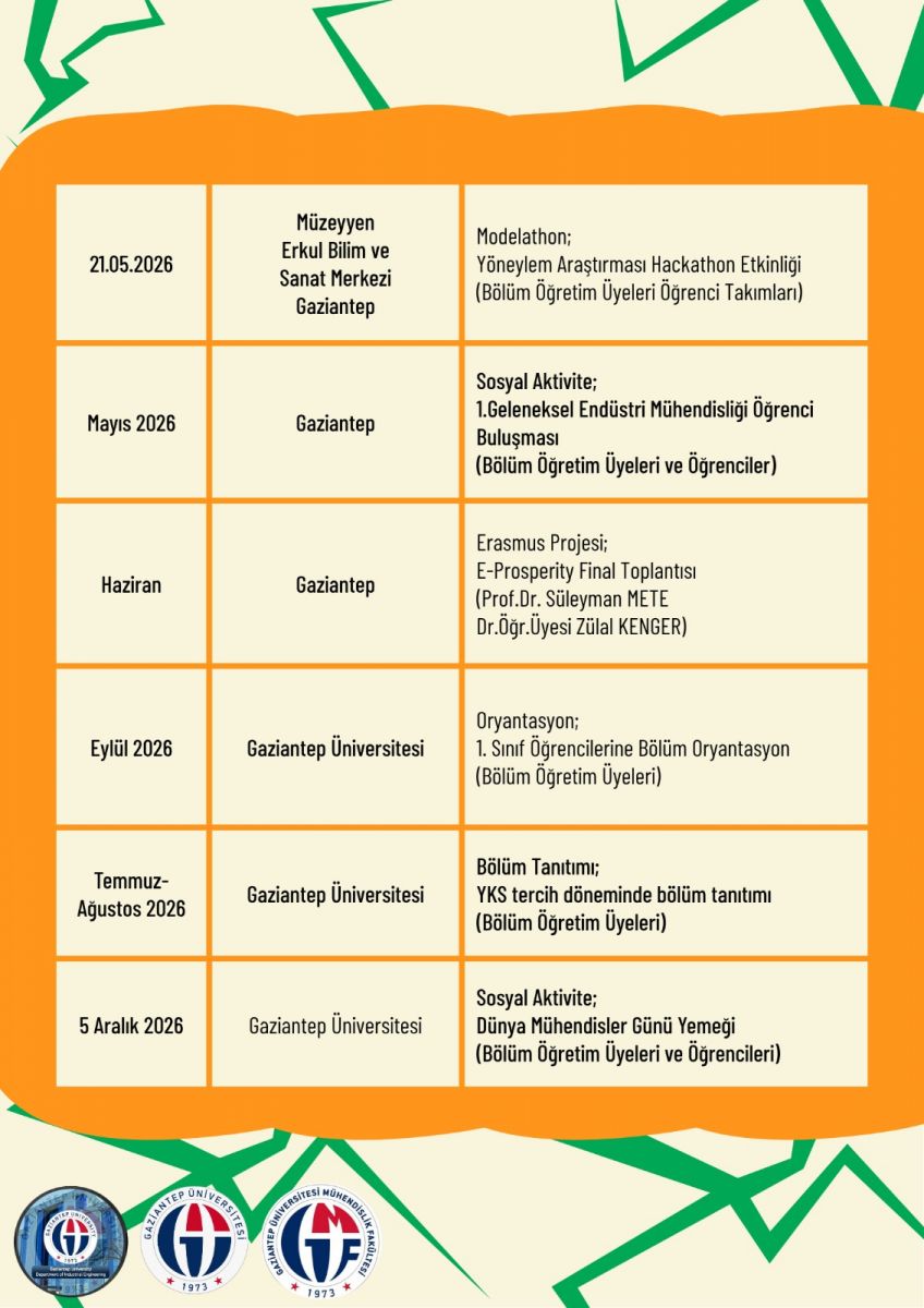 • ENDÜSTRİ MÜHENDİSLİĞİ ETKİNLİK TAKVİMİ