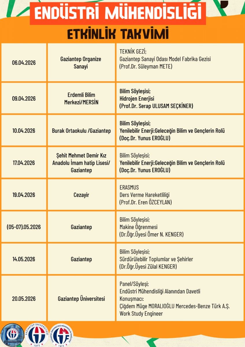 ENDÜSTRİ MÜHENDİSLİĞİ ETKİNLİK TAKVİMİ
